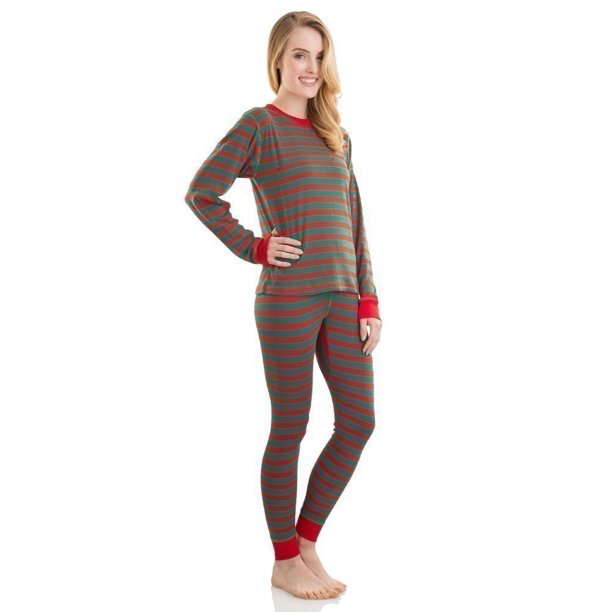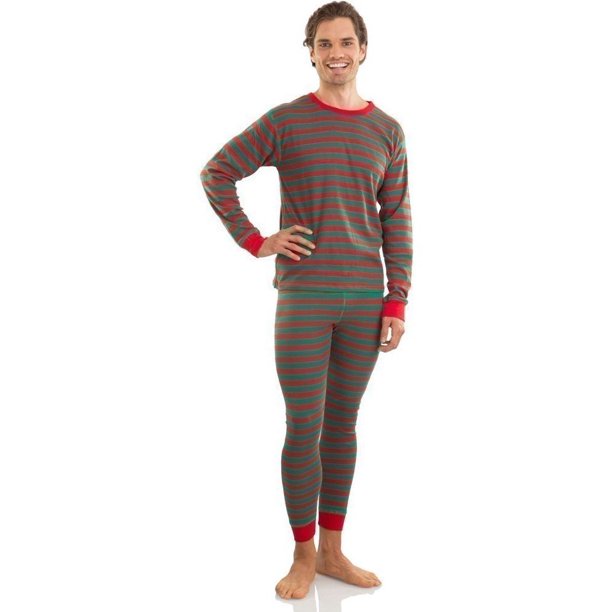 Elowel Adult Womens Mens Red And Green Pants Christmas Fitted Striped Pajamas 100% Cotton