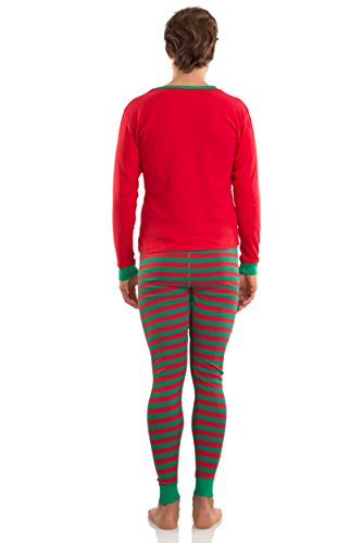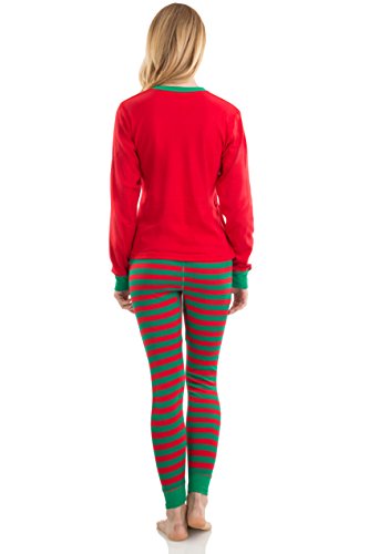 Elowel Adult Womens Mens Red Top & Red Green Pants Christmas Fitted Pajamas 100% Cotton