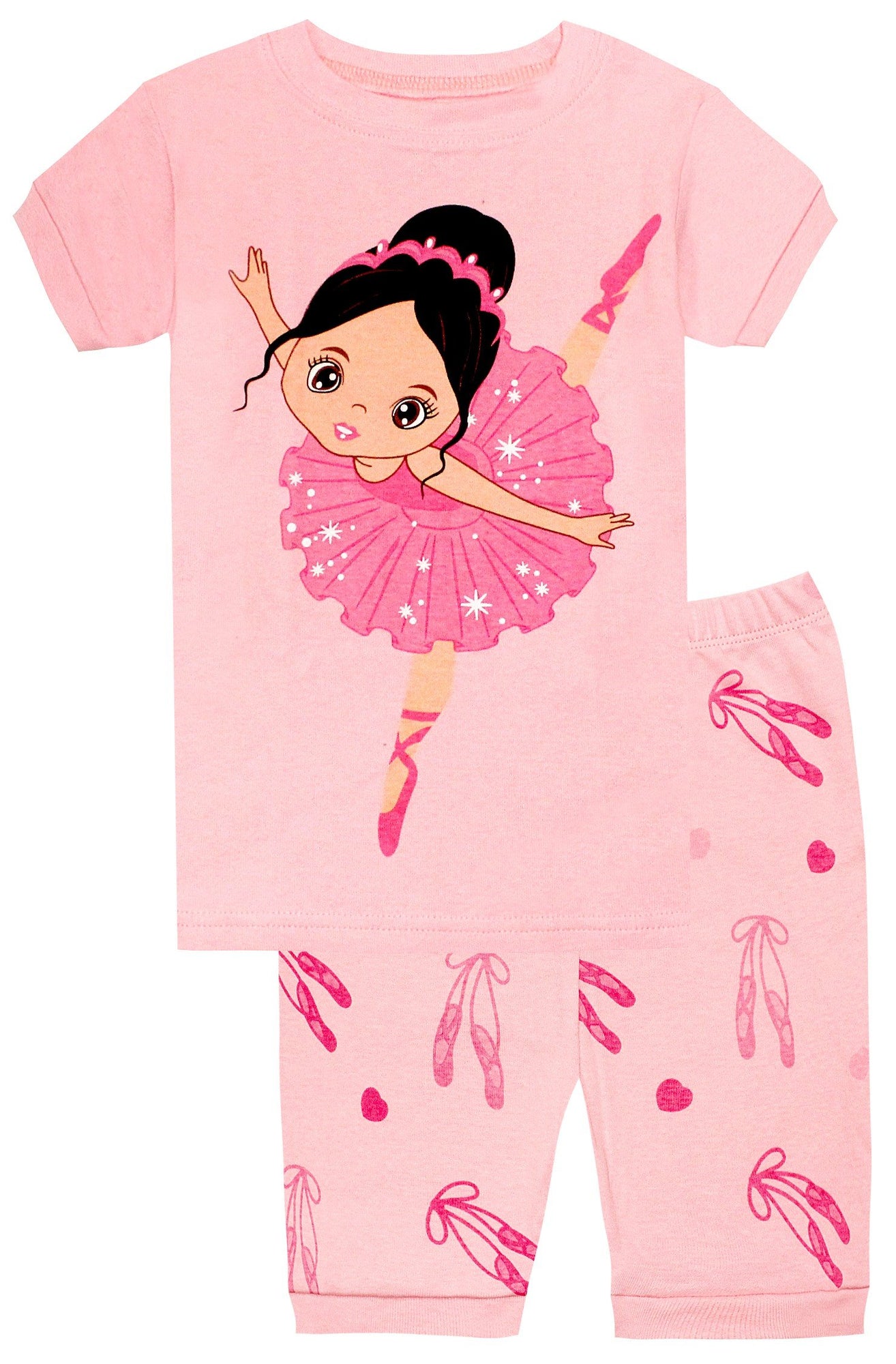 Elowel Girls Shorts Ballerina 2 Piece Pajamas Set 100% Cotton (Size Toddler-10Y)