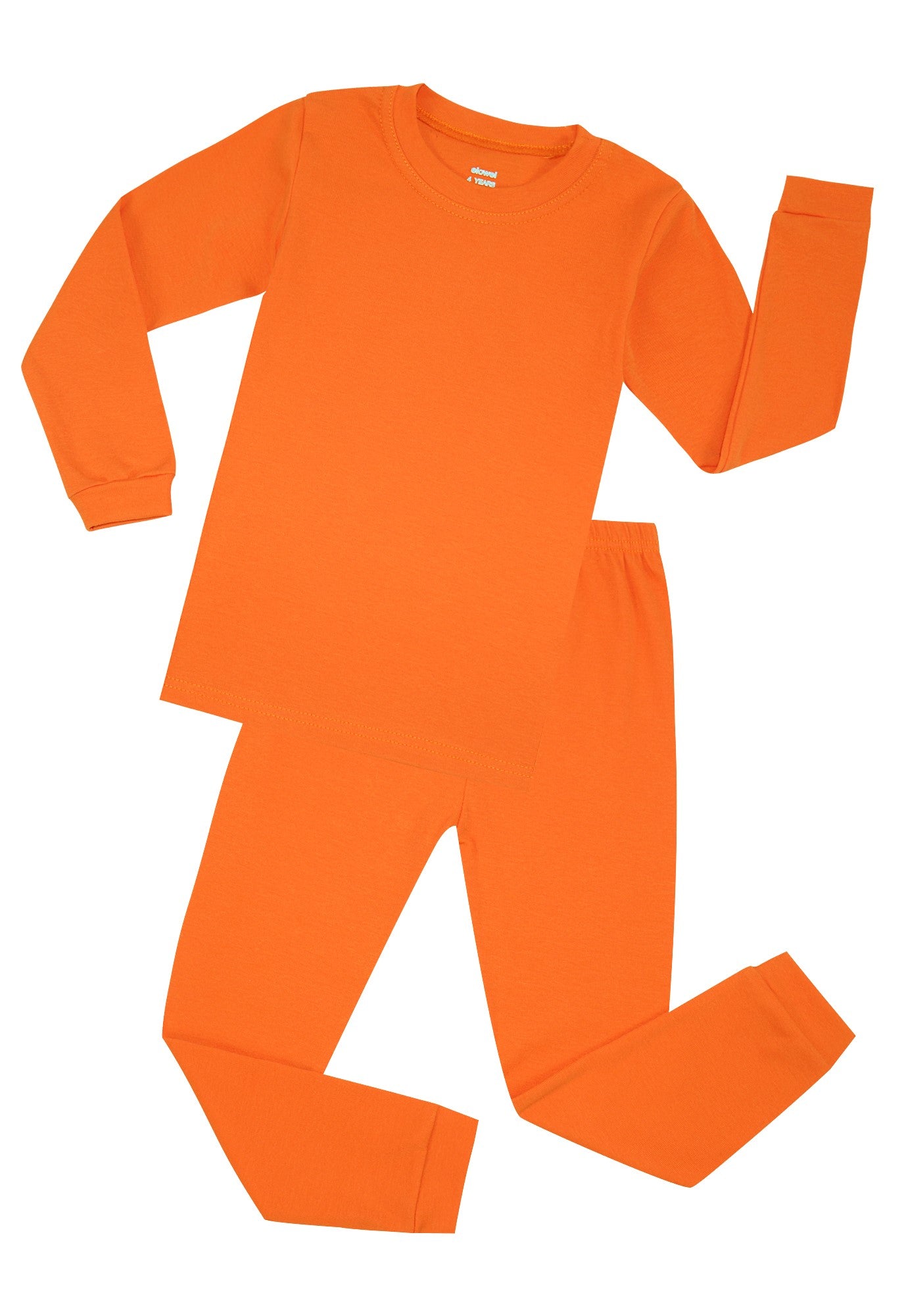 • Elowel Boys Girls Orange Solid long shirts 2 Piece Pajama Set 100% Cotton (Size 2-12 Years)