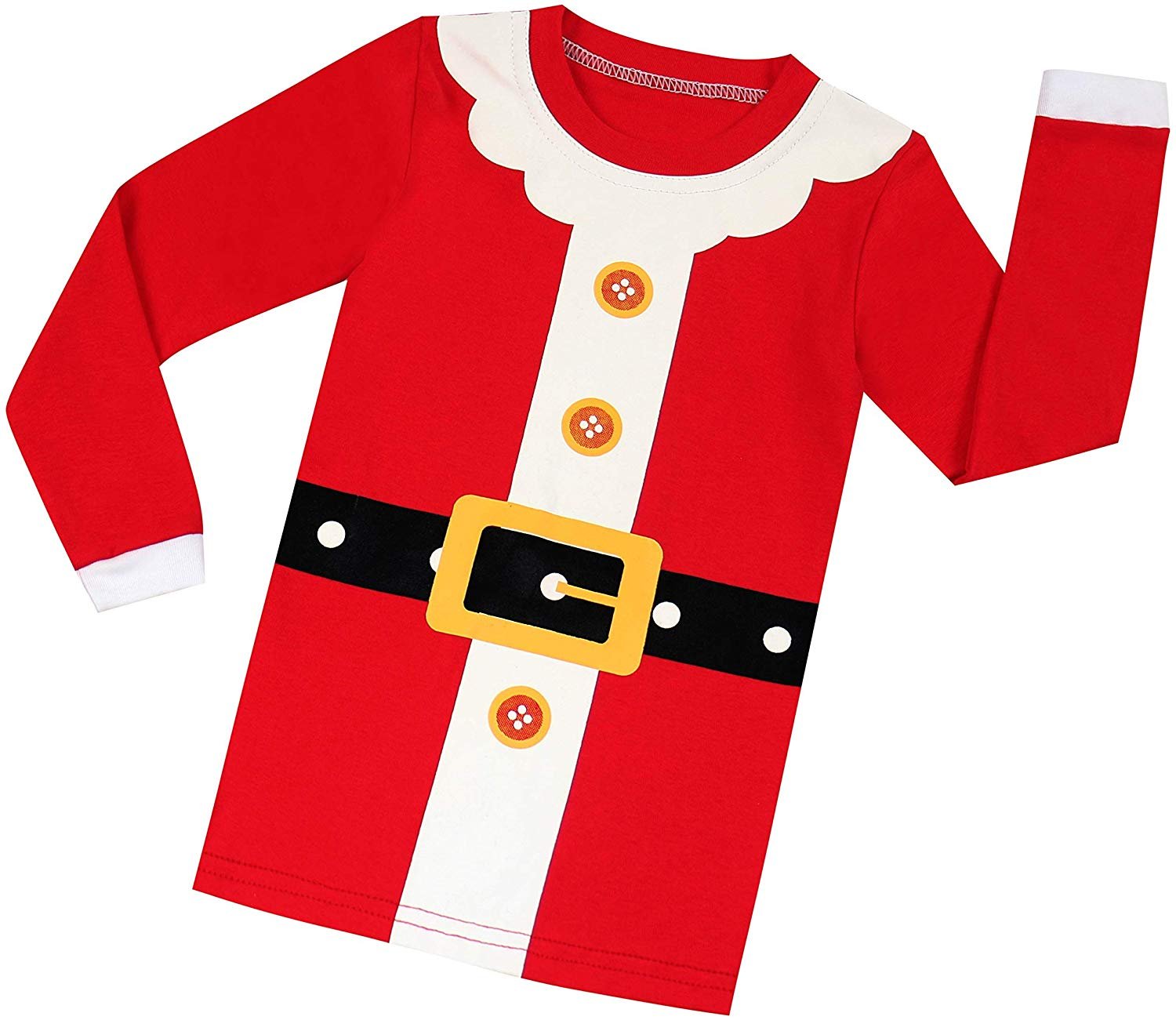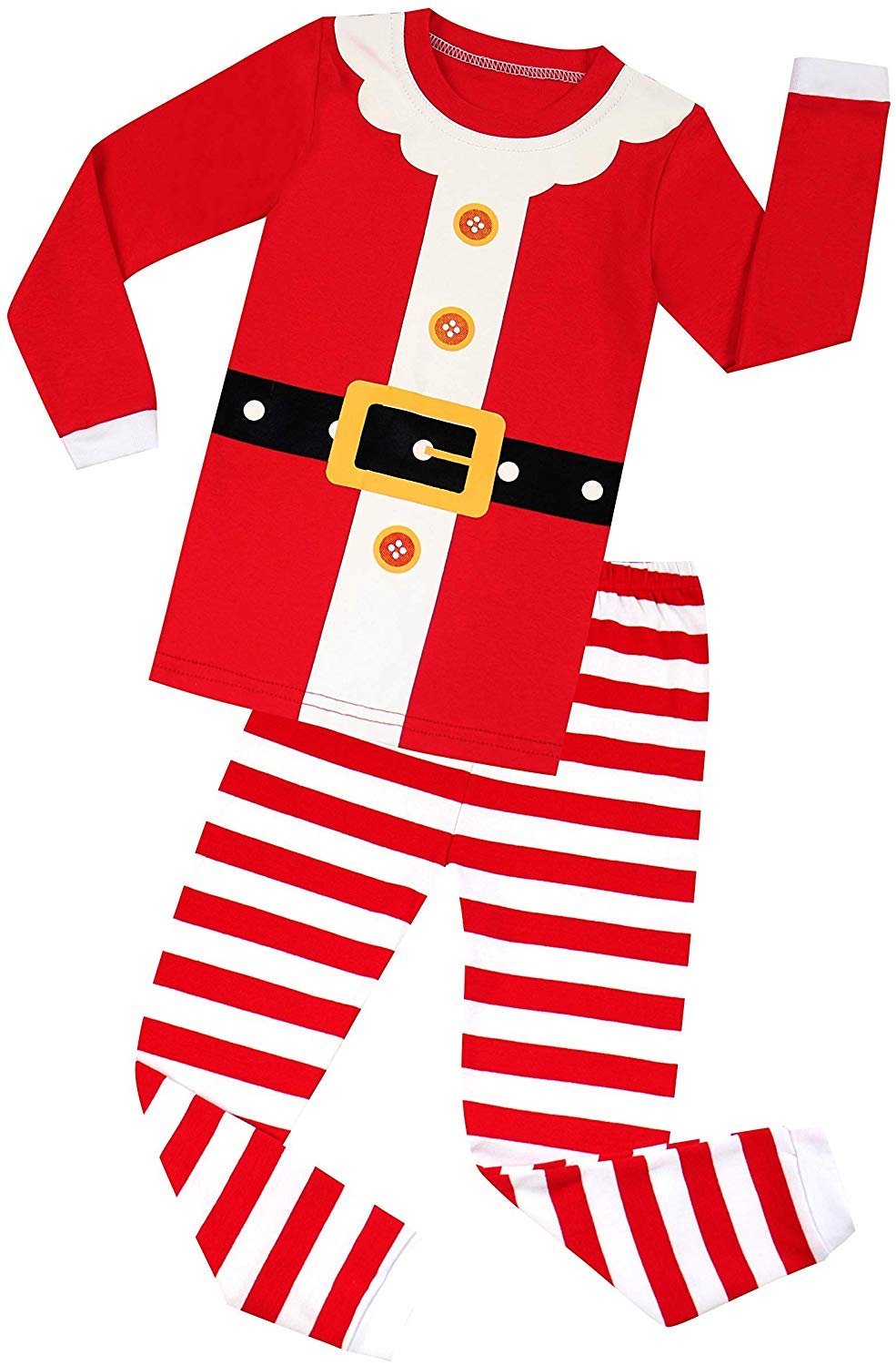 Your little one will sleep comfortable with this Christmas pajamas set from Elowel. You'll love these cute and comfy PJs from Elowel! Top and bottom are made of soft cotton. For fire safety, these pajamas should fit snugly. 100% Cotton. Machine wash warm, inside out. These pajamas are snugly fitted pajamas. If your child is above average consider a bigger size because of the snug fit. We hope you enjoy these pajamas from our unique collection.