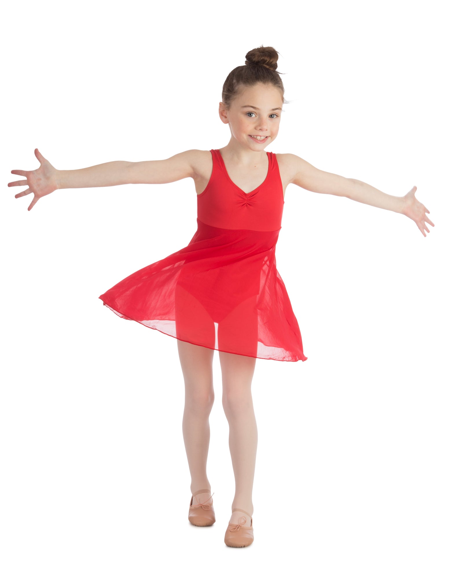 Elowel Kids Girls Empire Leotard Dress (Size 2-14 Years) Red