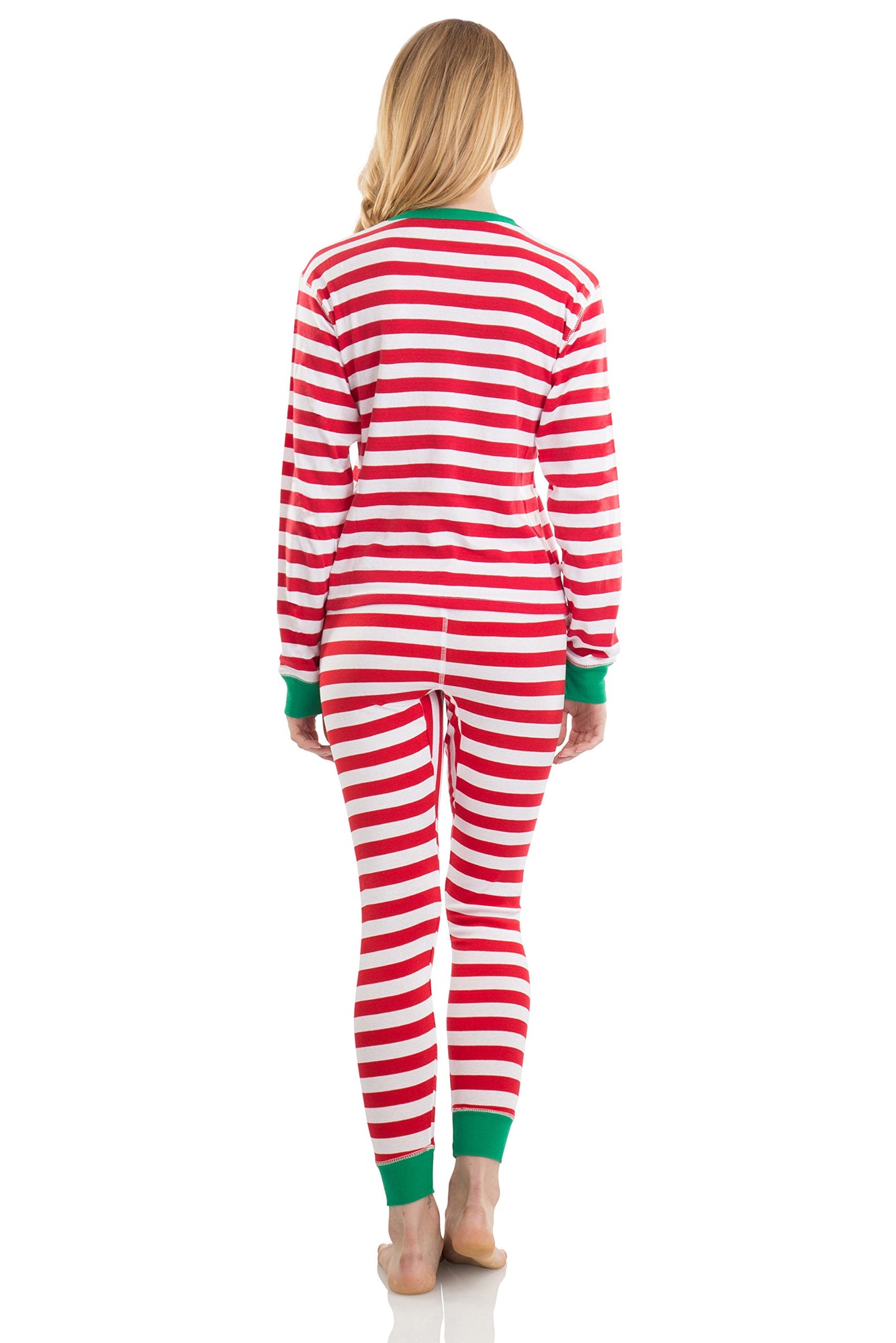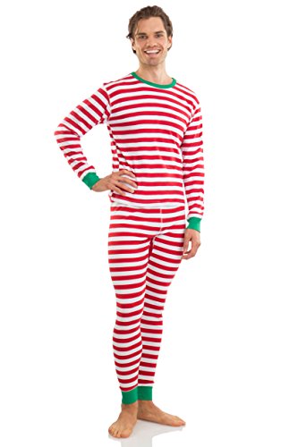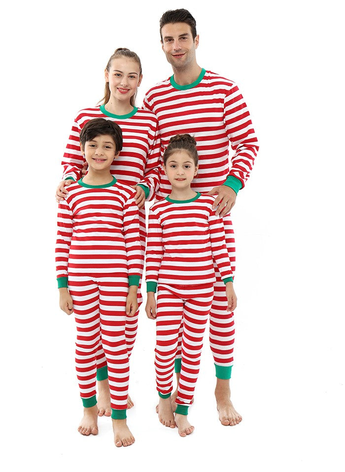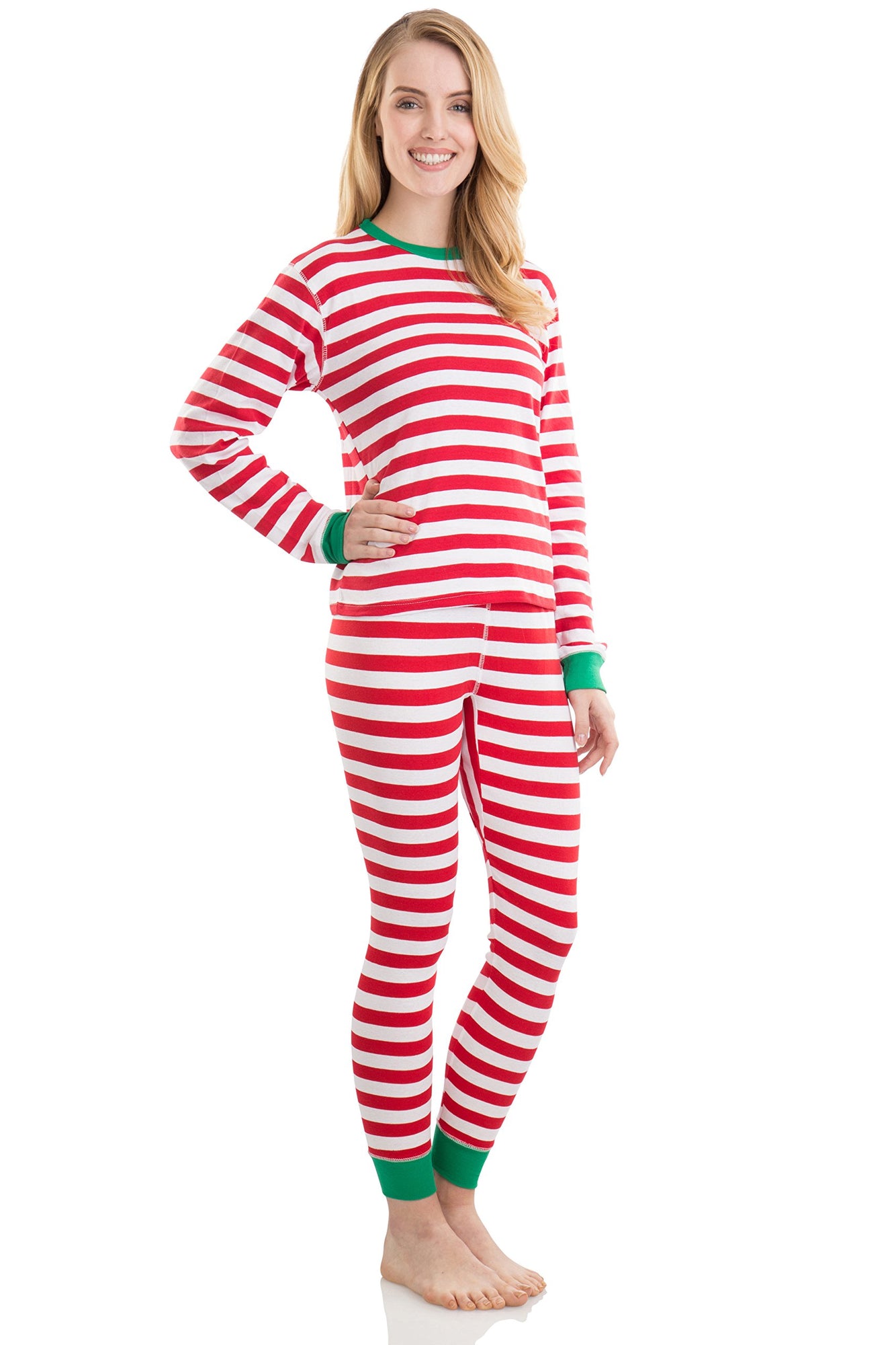 Elowel Adult Womens Mens Red And White Christmas Fitted Striped Pajamas 100% Cotton