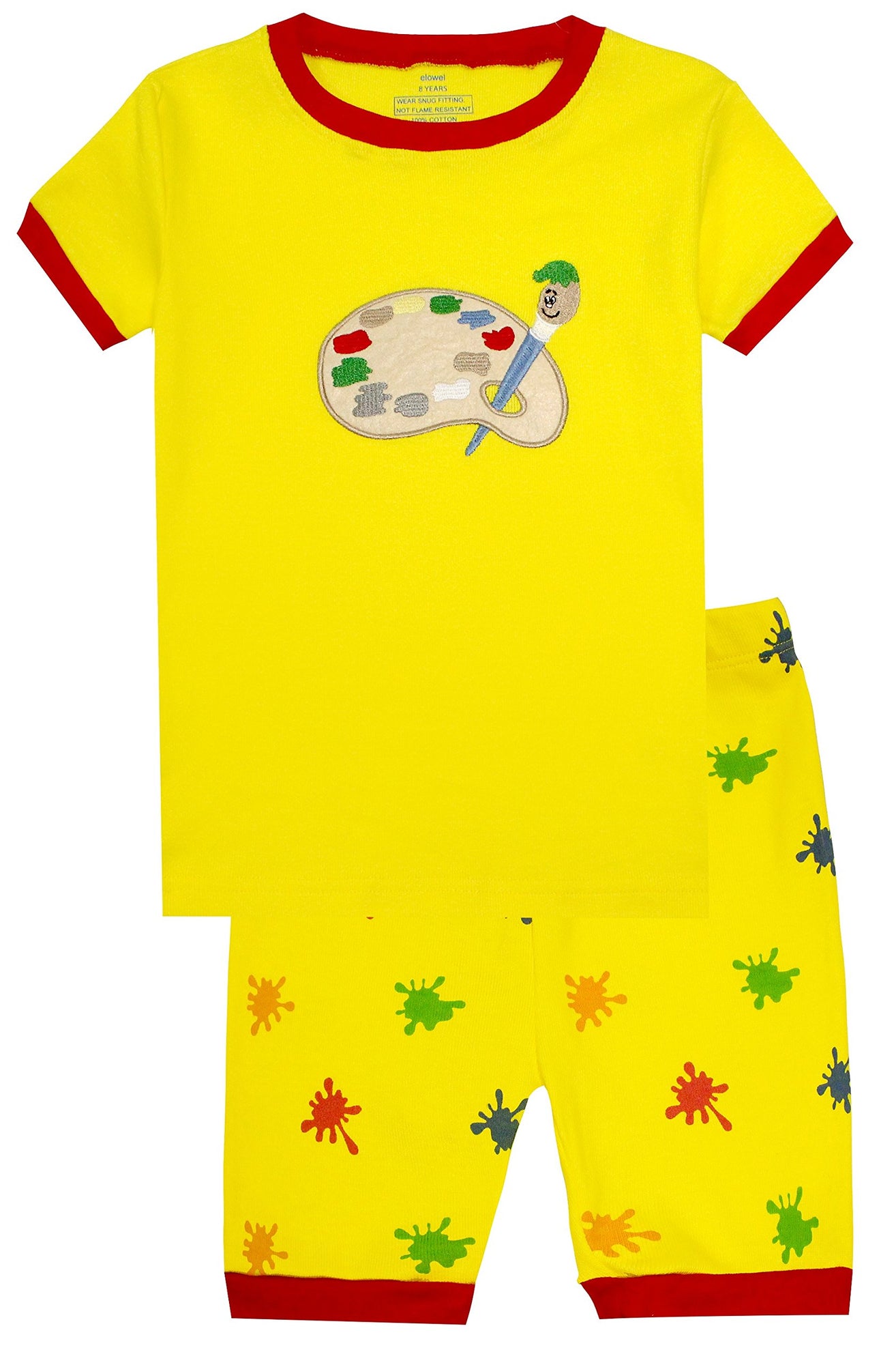 Elowel Girls Shorts Painter 2 Piece Pajamas Set 100% Cotton (Size Toddler-10Y)