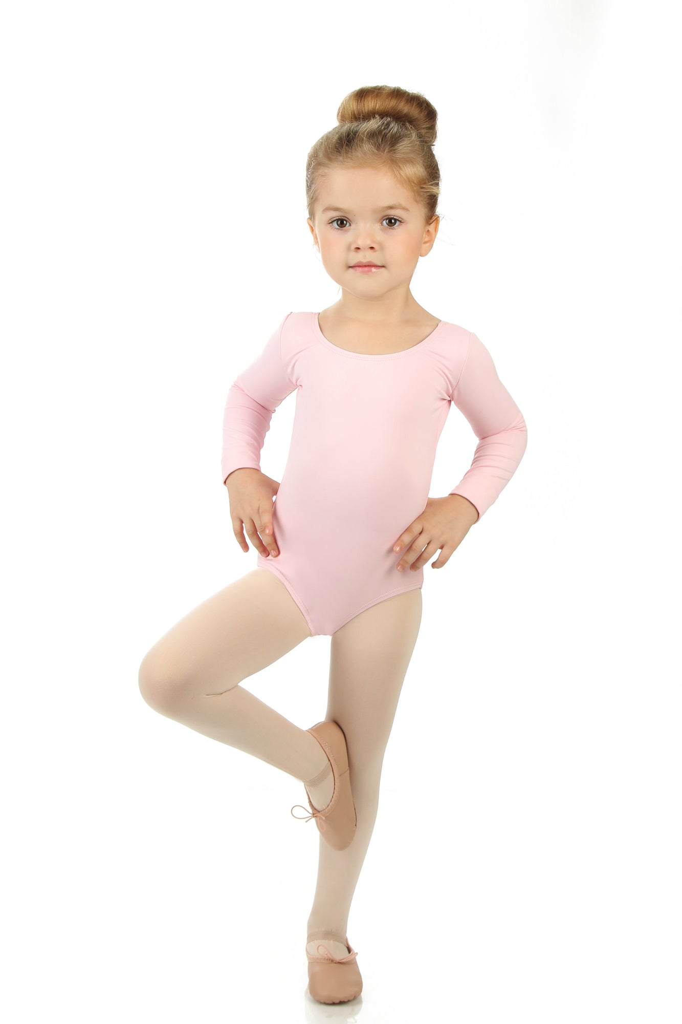 Elowel Kids Girls' Basic Long Sleeve Leotard (Size 2-14 Years) Pink