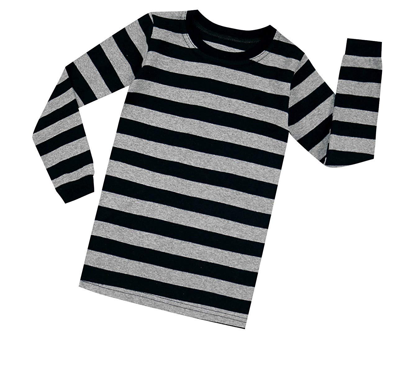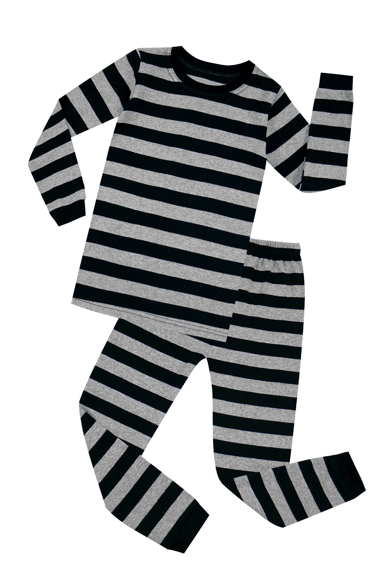 Elowel Boys Girls Grey and Black Stripe 2 Piece Pajama Set 100% Cotton