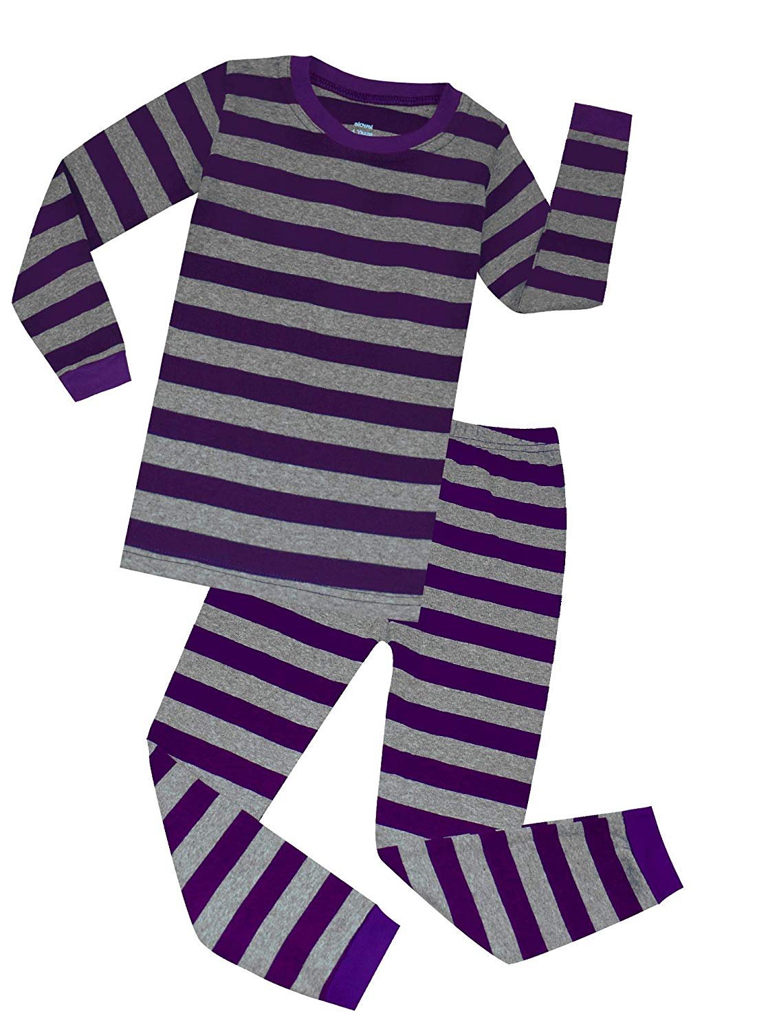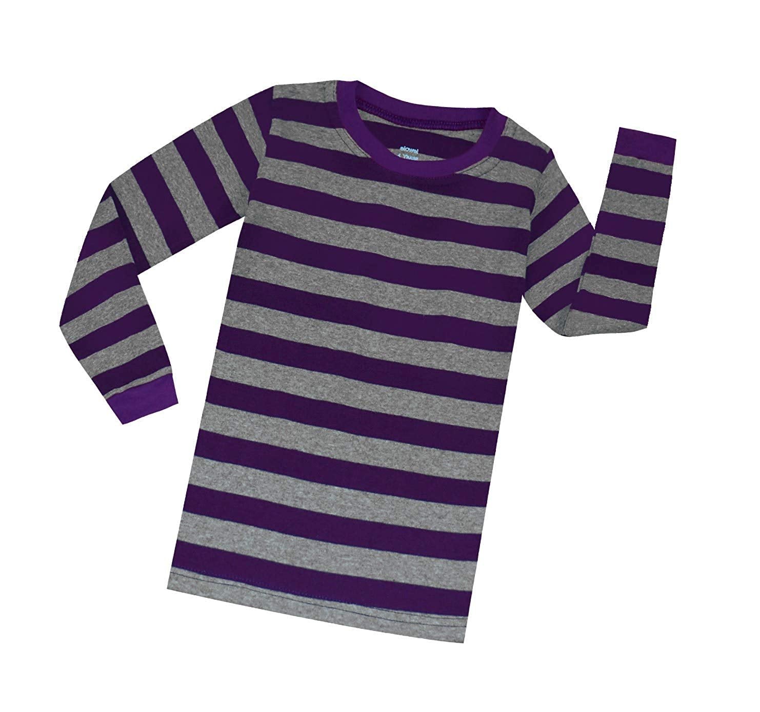 • Elowel Boys Girls Purple and Grey Stripe 2 Piece Pajama Set 100% Cotton (Size 12 M-12 Years)