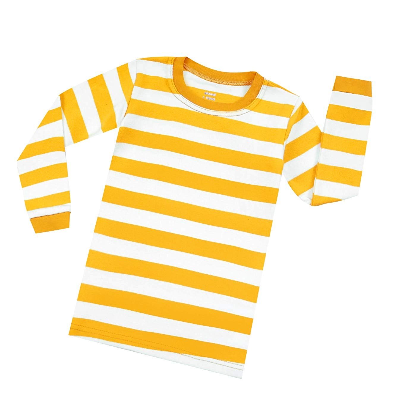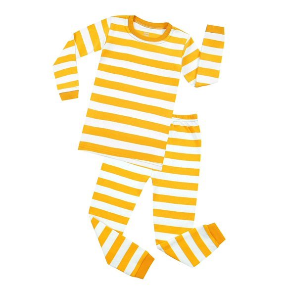 Yellow/white Elowel Boys Girls Green and Black Stripe 2 Piece Pajama Set 100% Cotton (Size 12 M-12 Years)