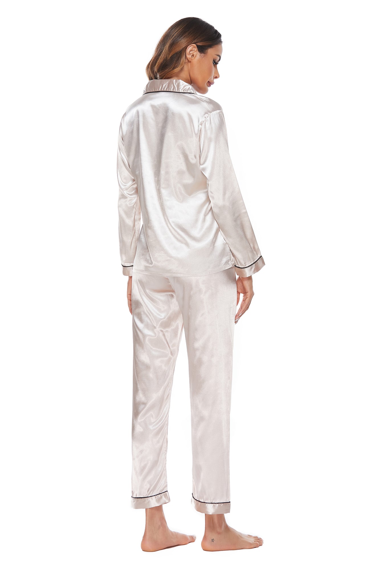 Elowel Silk Satin Pajama Set for Women - Satin Pajamas Button Down Sleepwear - Full Sleeve Satin Pajamas Women Loungewear Color Champange
