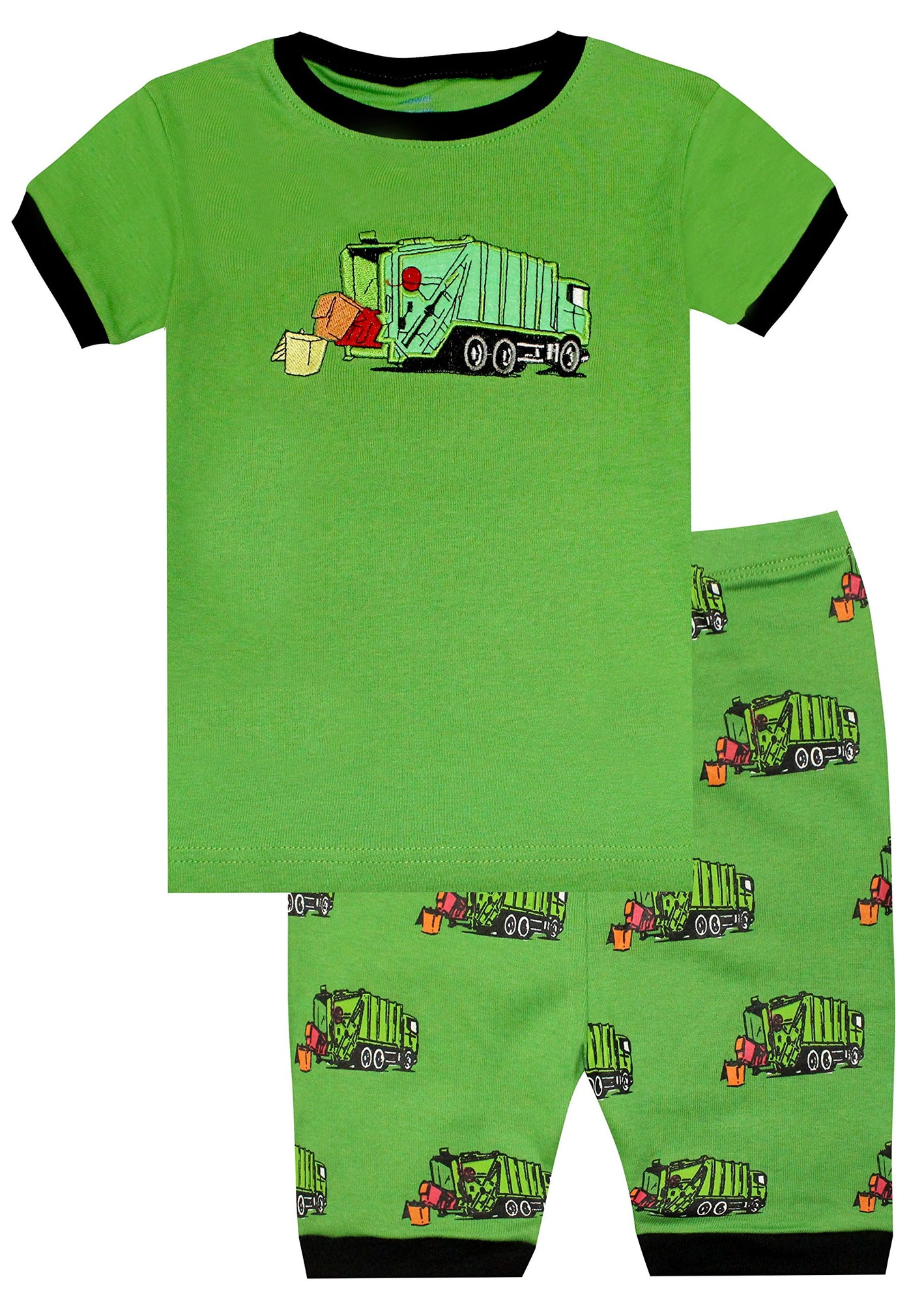 Elowel Boys Shorts Garbage Truck 2 Piece Pajamas Set 100% Cotton (Size Toddler-10Y)